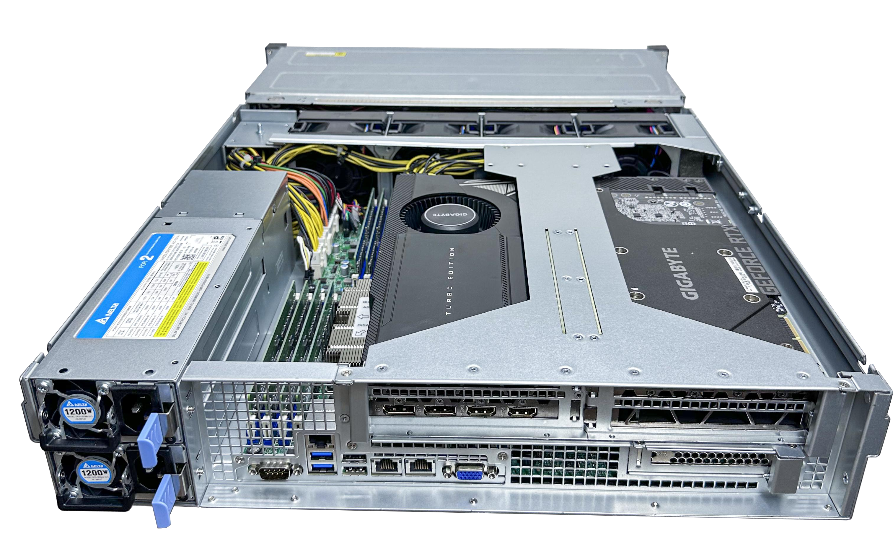 助力加速 AI 和 HPC工作負載: 支持2個雙插槽 GPU, 包括 NVIDIAA100